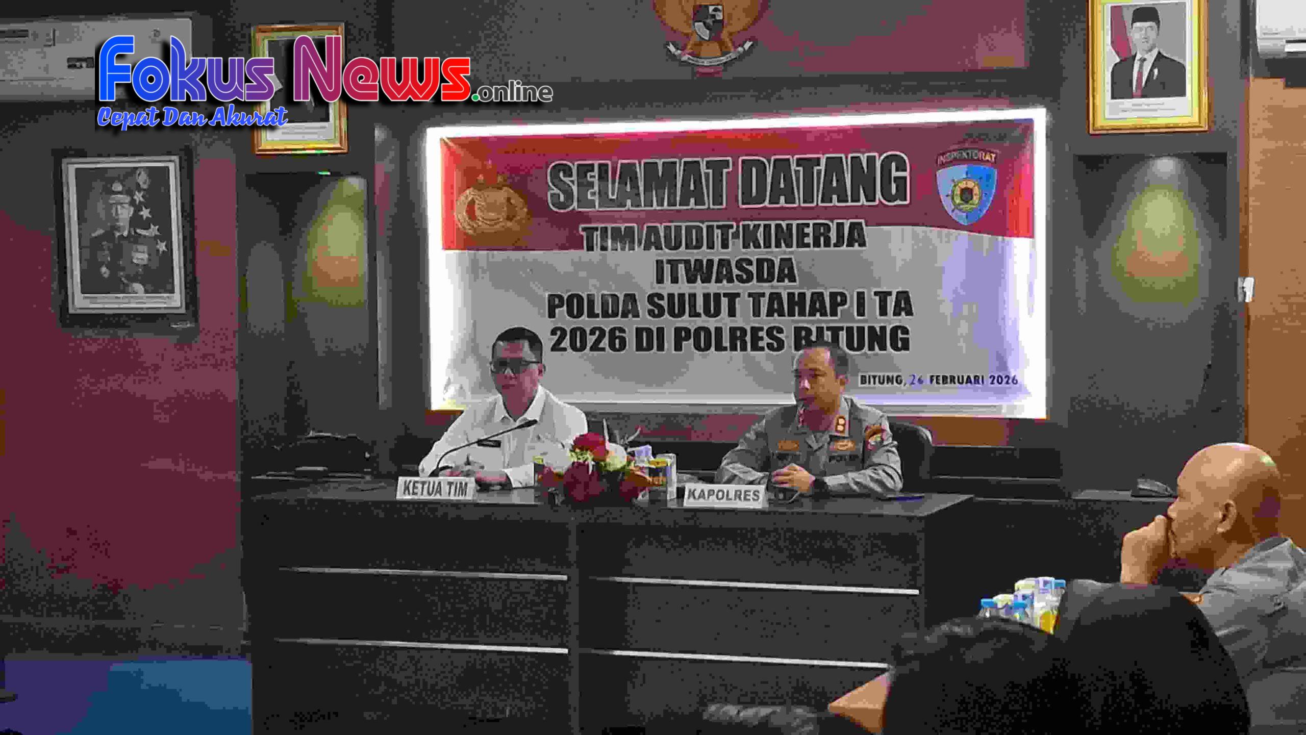 Bitung – Upaya memperkuat tata kelola organisasi kembali ditegaskan jajaran Polres Bitung dengan menerima kunjungan Tim Audit Kinerja Tahap I Tahun Anggaran 2026 dari Itwasda Polda Sulut, Kamis (26/2/2026).