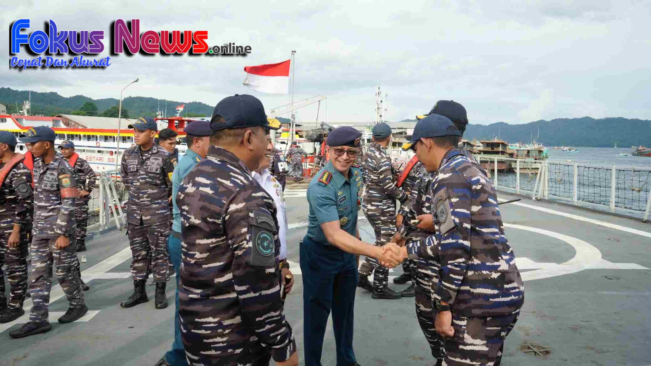 Bitung — Komandan Satuan Patroli Komando Daerah Angkatan Laut (Dansatrol Kodaeral) VIII Kolonel Laut (P) Marvill Marfel Frits, E.D., S.E., M.Tr.Hanla., CHRMP menyambut kedatangan Kapal Perang Republik Indonesia (KRI) Yos Sudarso–353 yang tiba dan sandar di Satrol Kodaeral VIII Bitung,Kelurahan Winenet Dua Kecamatan Aertembaga Selasa (11/11/2025).