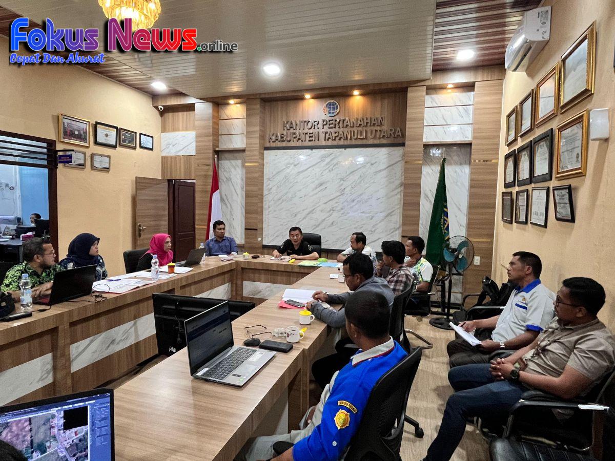 TAPUT – Kantor Pertanahan Kabupaten Tapanuli Utara melaksanakan kegiatan koordinasi bersama Inspektorat Jenderal Kementerian Pertanian dalam rangka pembahasan terkait proses pemecahan tanah.