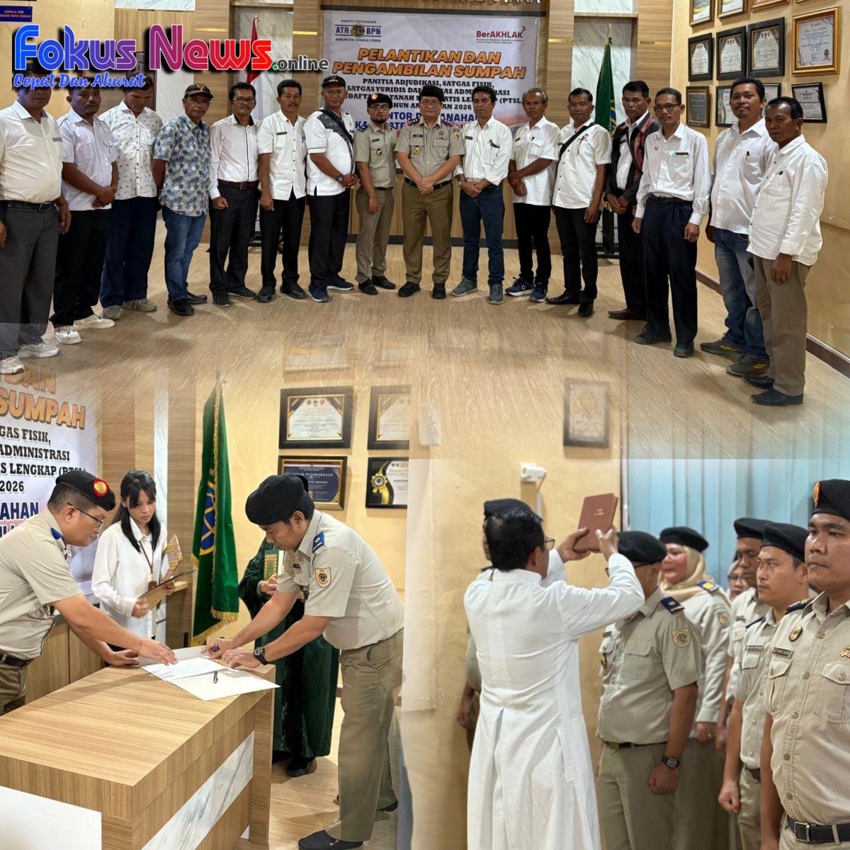 Tarutung – Kantor Pertanahan Kabupaten Tapanuli Utara melaksanakan pelantikan dan pengambilan sumpah Panitia Ajudikasi, Satuan Tugas Yuridis, Satuan Tugas Fisik, serta Satuan Tugas Administrasi Program Pendaftaran Tanah Sistematis Lengkap (PTSL) Tahun Anggaran 2026. Kegiatan ini dilaksanakan sebagai langkah awal pelaksanaan program PTSL di wilayah Kabupaten Tapanuli Utara.