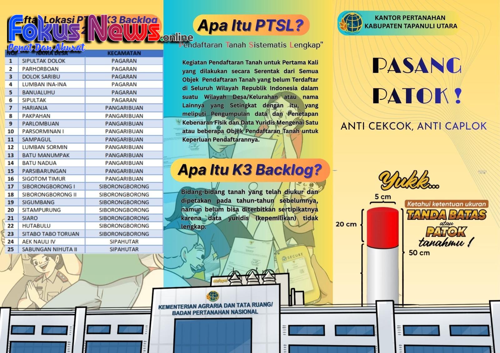 TAPUT – Kantor Pertanahan Kabupaten Tapanuli Utara resmi menetapkan lokasi pelaksanaan Program Pendaftaran Tanah Sistematis Lengkap (PTSL) Tahun Anggaran 2026 sebagai bagian dari upaya percepatan pendaftaran tanah dan peningkatan kepastian hukum hak atas tanah bagi masyarakat.