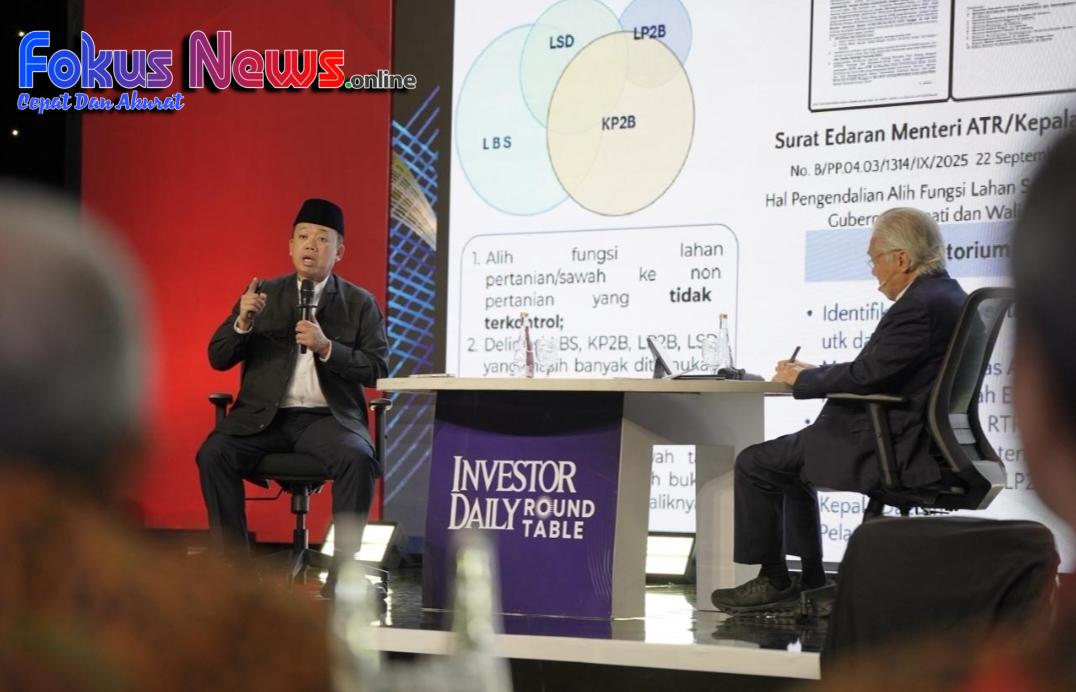 Jakarta – Menteri Agraria dan Tata Ruang/Kepala Badan Pertanahan Nasional (ATR/BPN), Nusron Wahid, menyatakan bahwa upaya menjaga ketahanan pangan nasional tidak akan menghambat iklim investasi. Menurutnya, kedua agenda tersebut harus berjalan beriringan demi memastikan pembangunan dan masa depan bangsa tetap berkelanjutan. Demikian ia sampaikan saat menjadi narasumber dalam acara Investor Daily Roundtable, yang digelar di Jakarta, Rabu (10/12/2025).