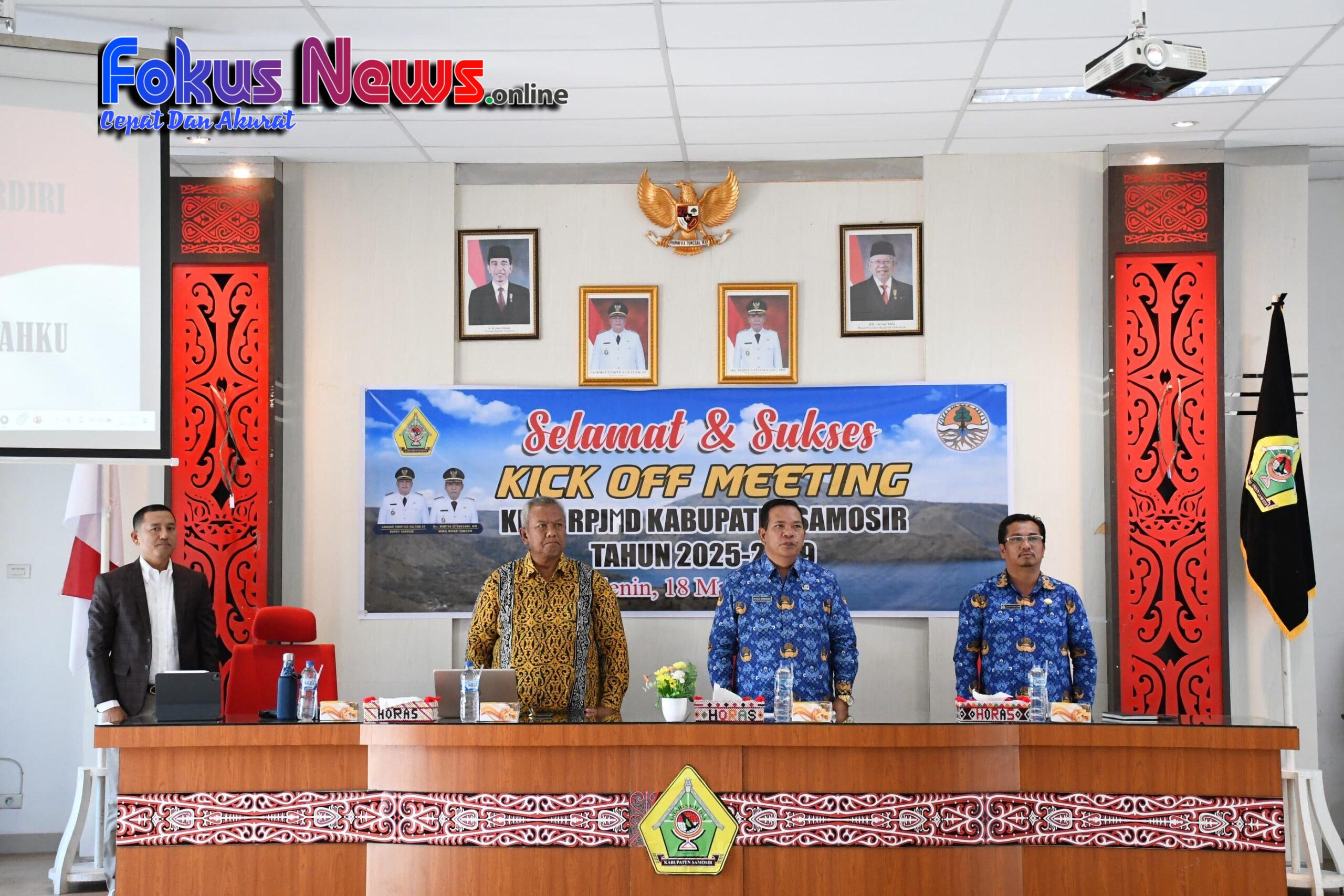 Samosir-Asisten Perekonomian dan Pembangunan Hotraja Sitanggang, ST, MM membuka pelaksanaan Konsultasi Publik (Kick of Meeting) Kajian Lingkungan Hidup Strategis (KLHS) Rencana Pembangunan Jangka Menengah Daerah (RPJMD) Kabupaten Samosir 2025-2029, yang digelar di Aula Kantor Bupati Samosir, Senin (18/03/2024).
