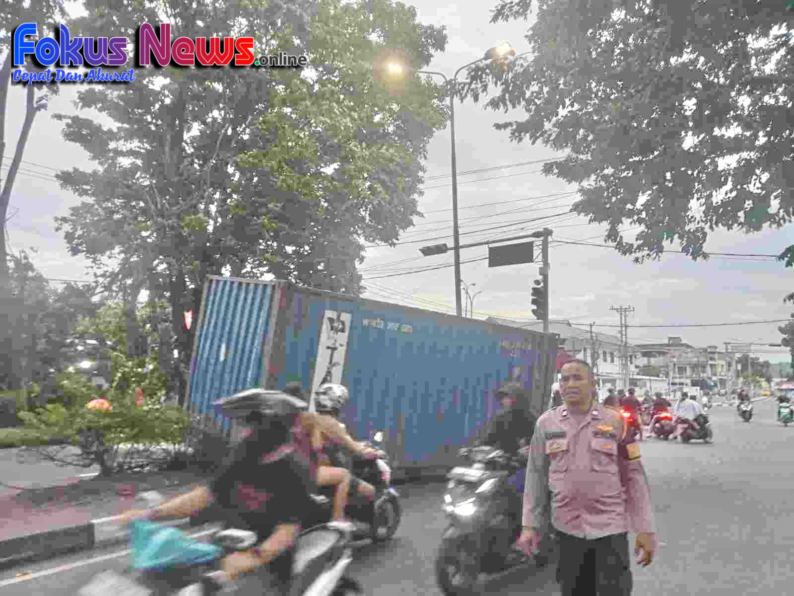 Polisi mengingatkan para pengemudi kendaraan berat agar memastikan sistem pengunci kontainer dalam kondisi baik, memeriksa beban muatan sebelum beroperasi, serta menyesuaikan kecepatan saat melintasi persimpangan ramai.