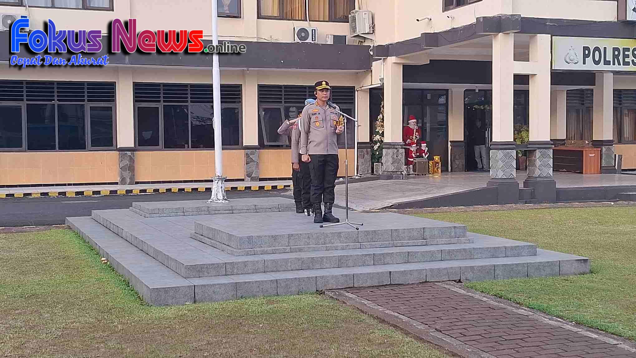 BITUNG — Suasana Malam Natal 2025 di Kota Bitung dijaga dengan kesiapsiagaan penuh oleh jajaran Polres Bitung. Sebelum umat Kristiani memulai ibadah, Kapolres Bitung AKBP Albert Zai, S.I.K., M.H., memimpin apel kesiapan personel sebagai langkah memastikan pengamanan berjalan tertib dan berorientasi pada kenyamanan jemaat, Rabu (24/12/2025).